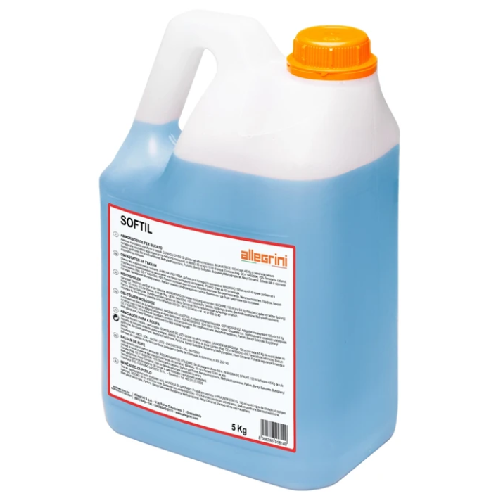 Częstym problemem po praniu ekstrakcyjnym silnymi środkami zasadowymi jest utrata miękkości tkaniny – materiał staje się twardy i “szorstki” w dotyku. Allegrini Softil został stworzony, aby temu zapobiec. Działa na poziomie strukturalnym włókna, domykając jego łuski i nadając mu wyjątkową gładkość.